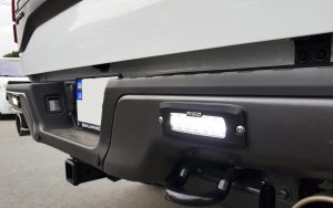 За решетку радиатора мы монтируем светодиодную панель Rigid SR-Series длиной 30 дюймов. В задний бампер устанавливаем две фары Rigid SR-Q PRO.