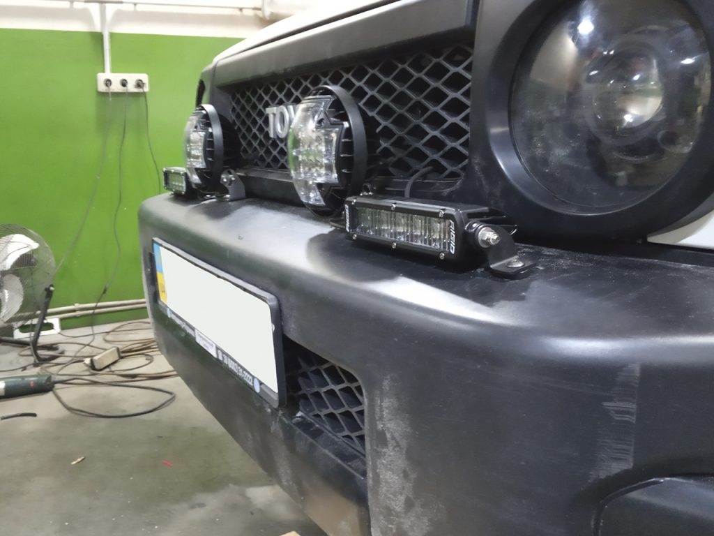 Для установки дополнительного света в наш тюнинг-центр приехал внедорожник Toyota FJ Cruiser. Для этого автомобиля мы выбрали две пары светодиодных фар от американского производителя RIGID. Первая пара — это круглые светодиодные фары сверхдальнего/водительского света RIGID R-46. Вторая пара — это противотуманные фары с четкой светотеневой границей RIGID SR SAE.