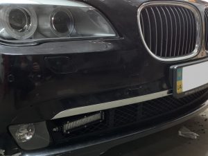 Именно такие ПТФ мы установили на автомобиль BMW. Наилучший эффект освещения достигается путем установки фар в самую нижнюю точку автомобиля. Поэтому монтируем RIGID SR SAE в нижнюю часть переднего бампера.